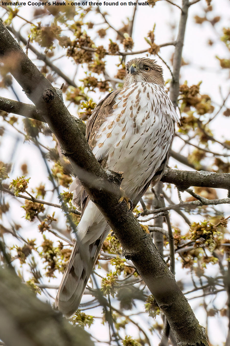 Best birds were a Green Heron, seen by many before it flew out of view, and a very early Yellow Warbler. We didn’t go to the lake, so our species list doesn’t include many waterfowl. Despite teh challenges, we still managed to find 41 species on the walk. Here’s the full list:
